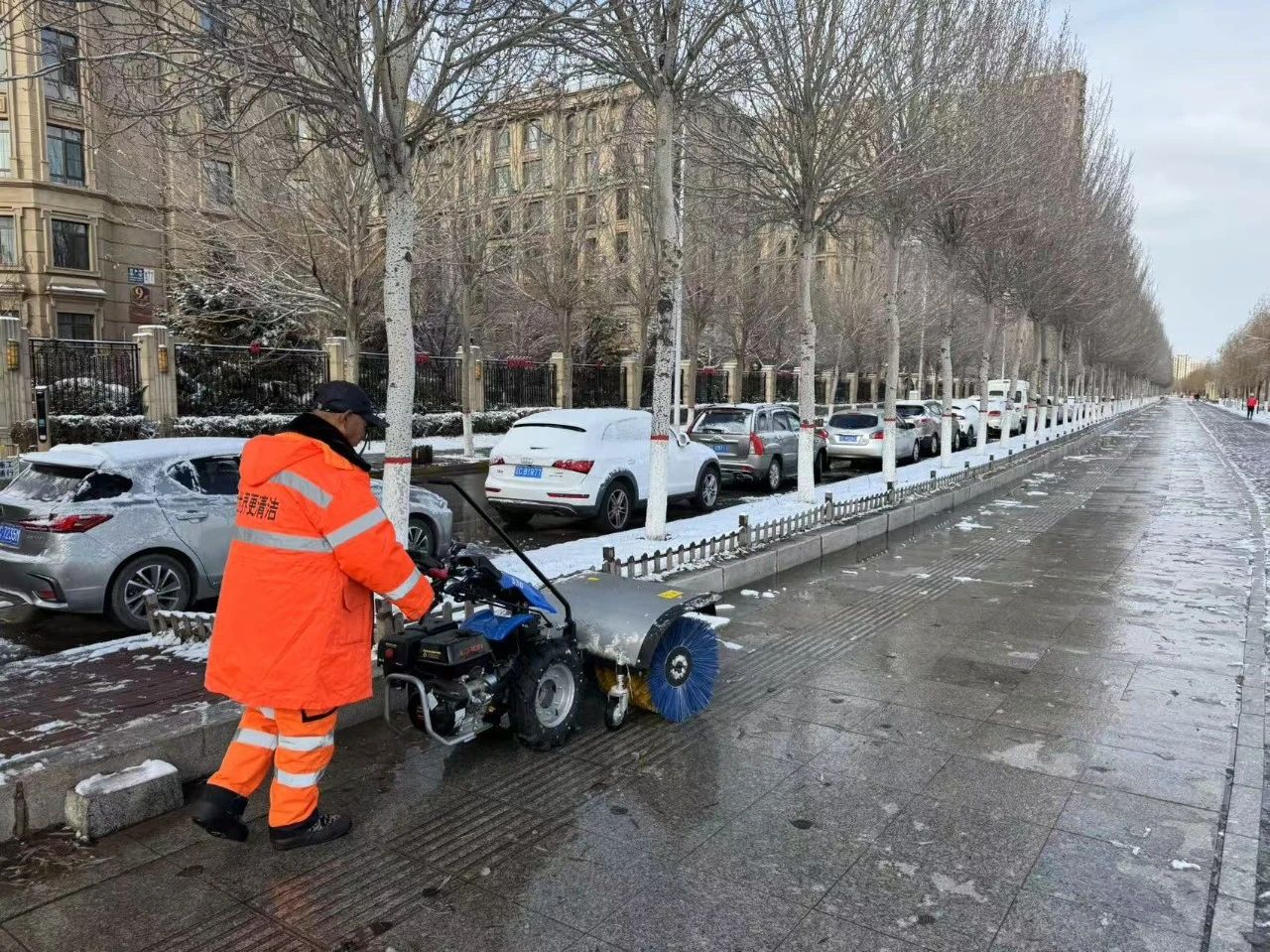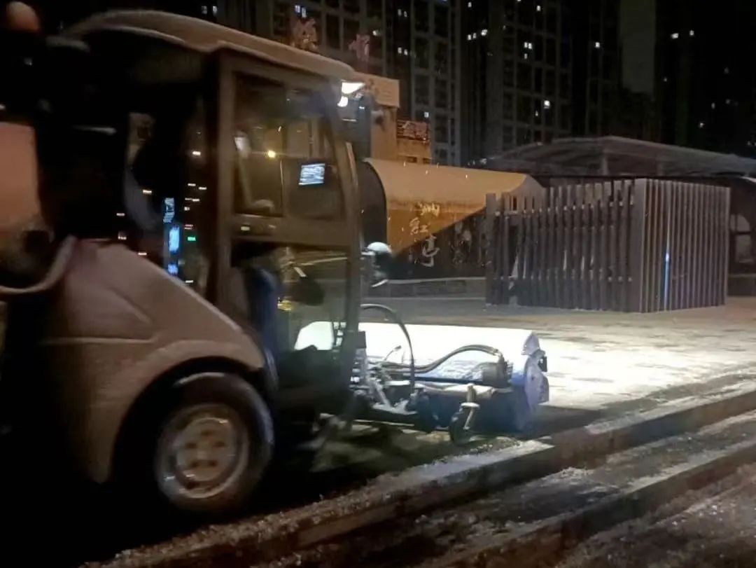 辽阳项目采取机械+人工组合作业的形式,对县内主次干道、人行道等反复清扫作业,并随时调配人员和机械车辆,做到清雪过程灵活机动,循环清理,确保雪下即清,雪停路净,第一时间保障市民出行安全。